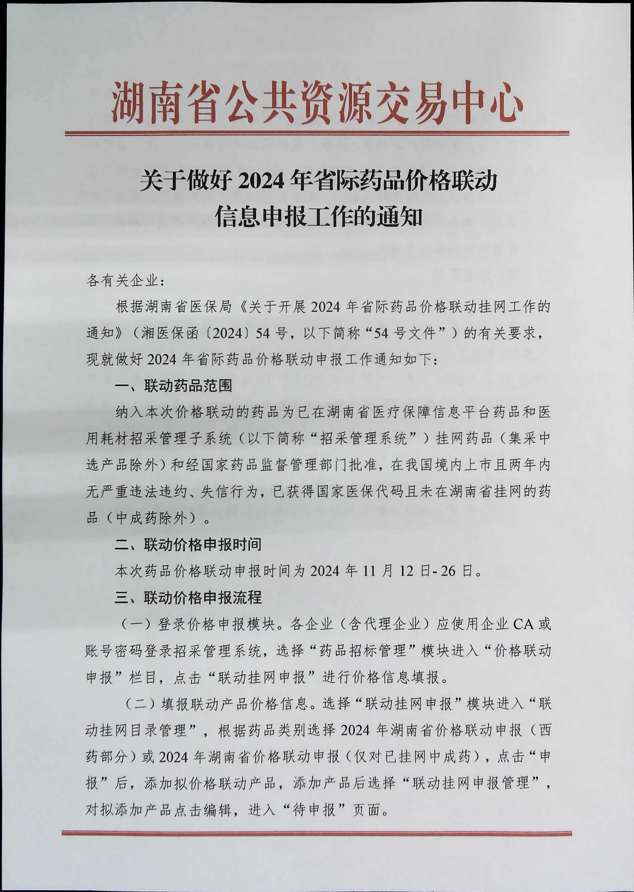 关于做好2024年省际药品价格联动信息申报工作的通知 - p站