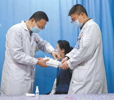 一名患者在湖南省湘潭市中医医院骨伤科治疗。湘潭市中医医院供图